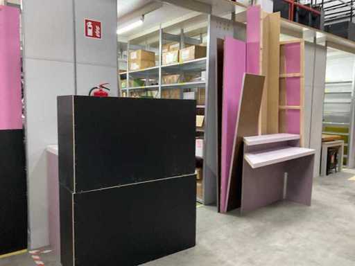 deels gedemonteerd; w.o. afm. ca. 80x60x170 cm; spaanplaat