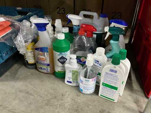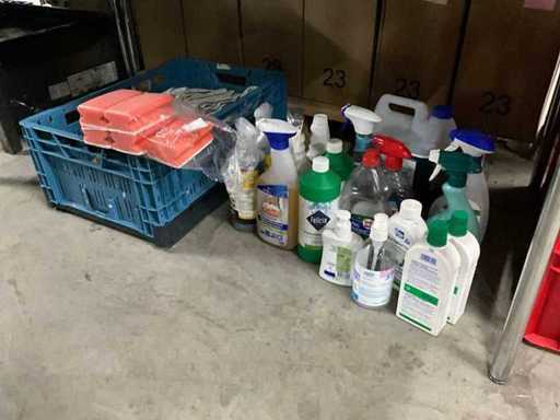 schoonmaakazijn, ontvetter, sponzen en doeken.