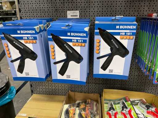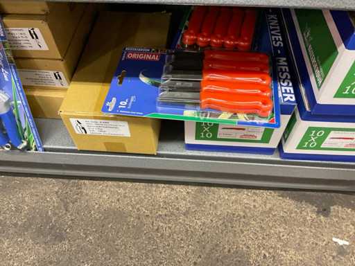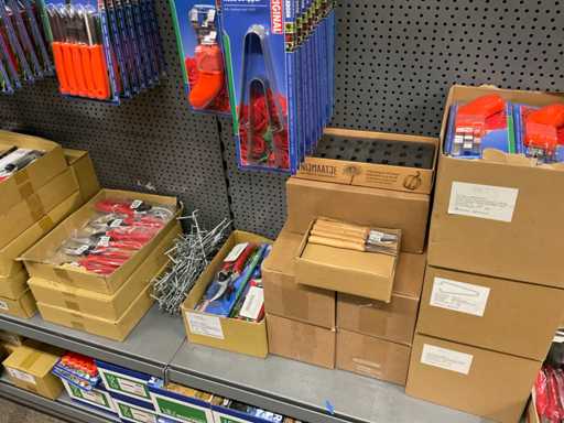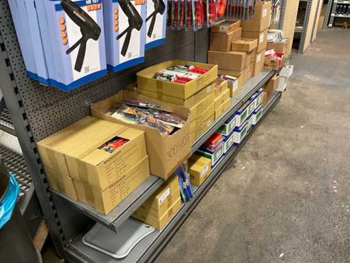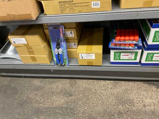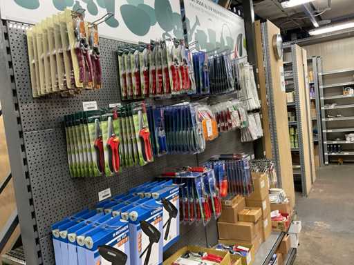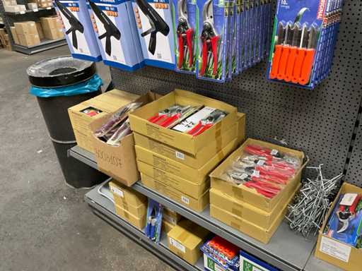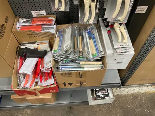 Inhoud van 1 zijde van stelling bestaande o.a. uit snoeischaren, lijmpistolen, mesjes, exclusief stelling.