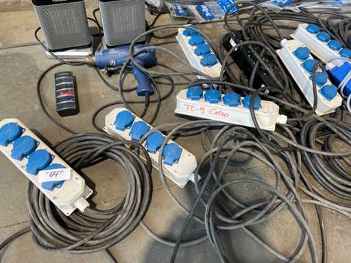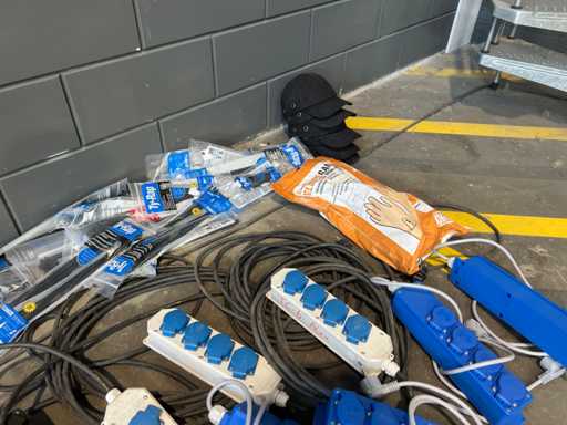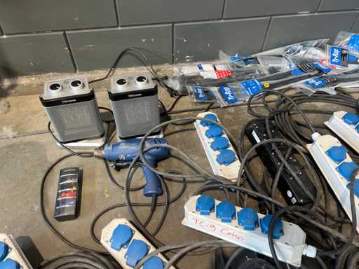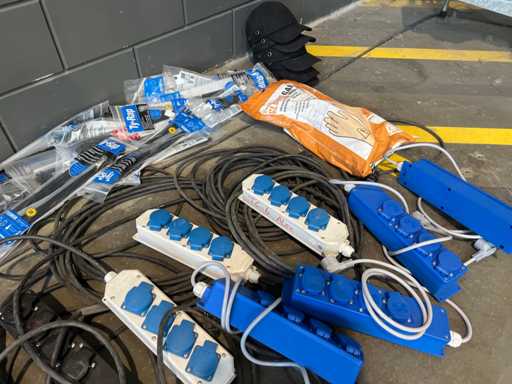 Partij stekkerdozen, verlengsnoeren en klein elektrisch materiaal