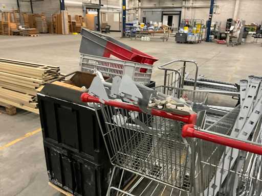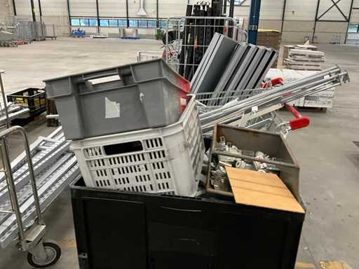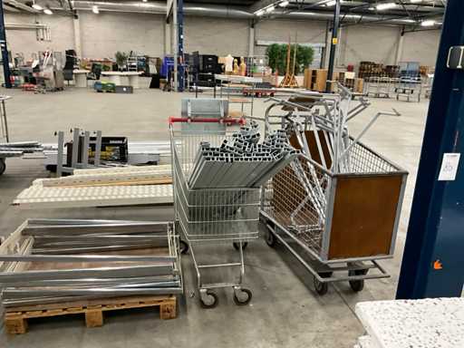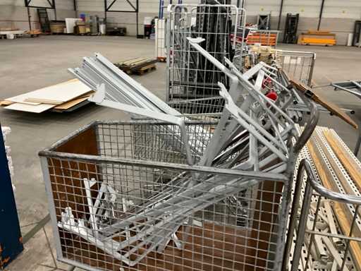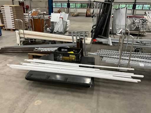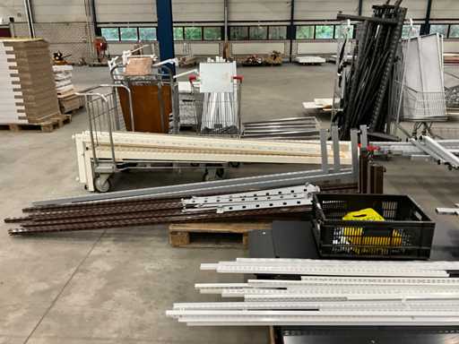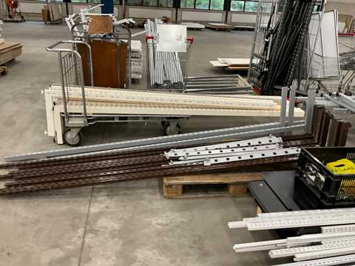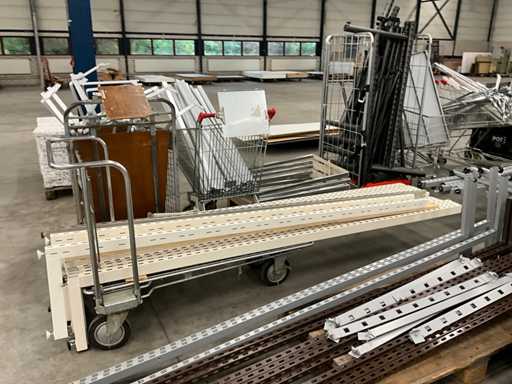 bestaande uit winkelstelling delen, staanders, liggers, legborden, etc