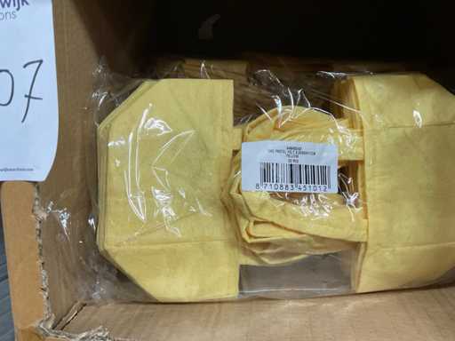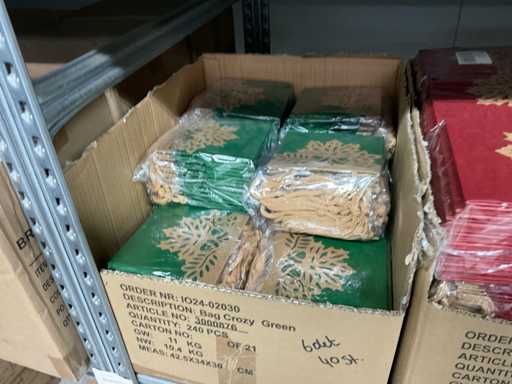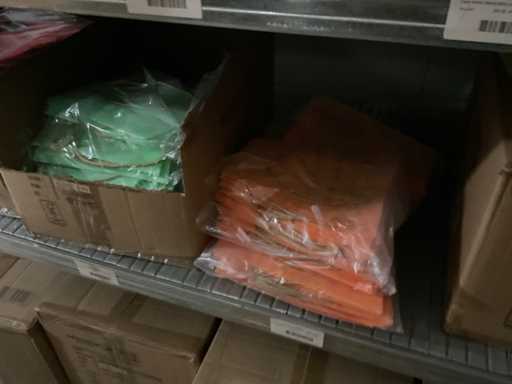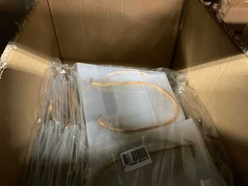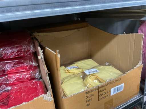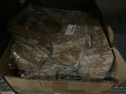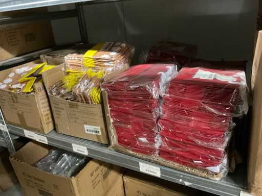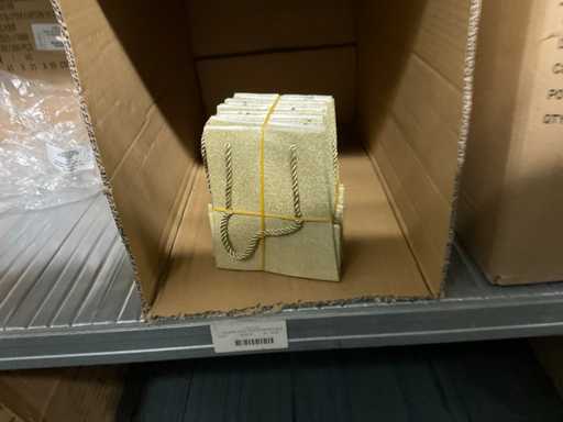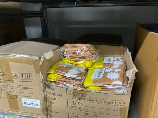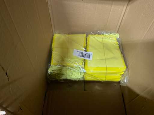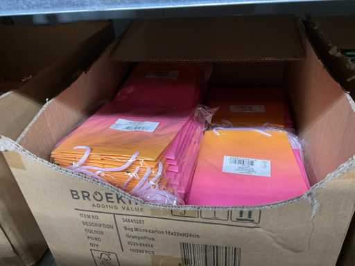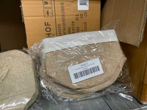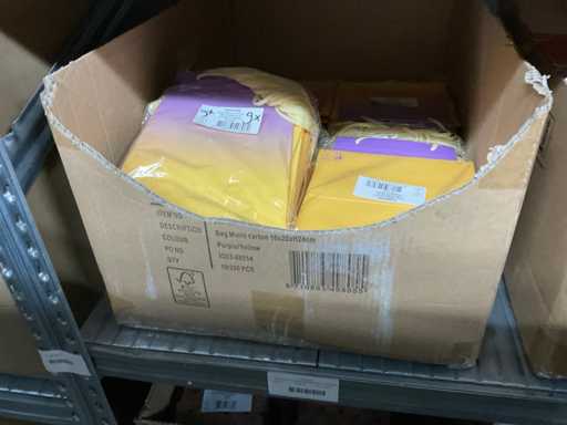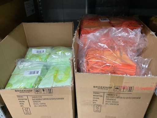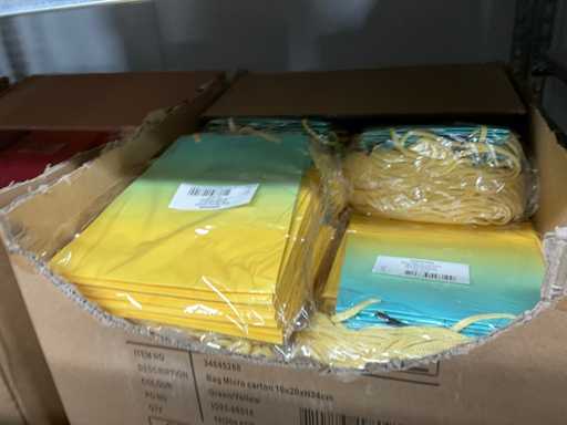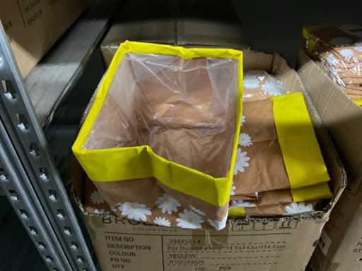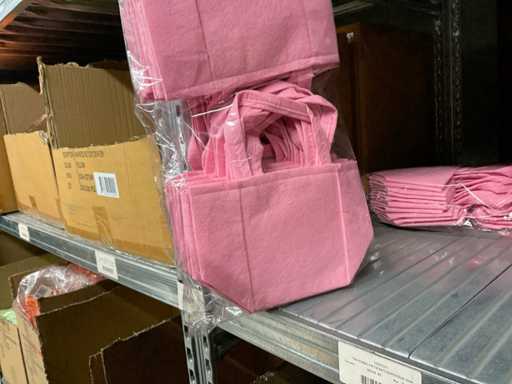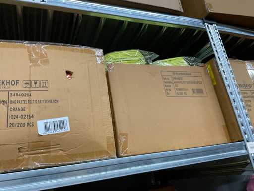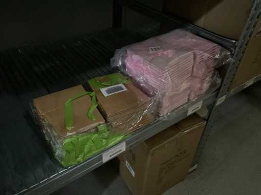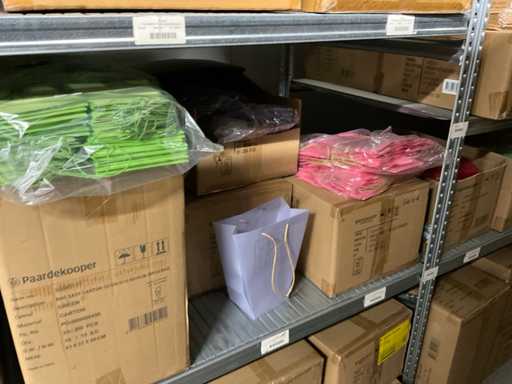 Inhoud van 1 zijde van stelling bestaande uit jutte, papieren en plastic tassen, exclusief stelling.