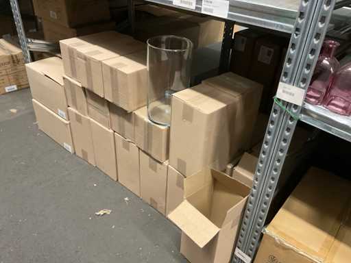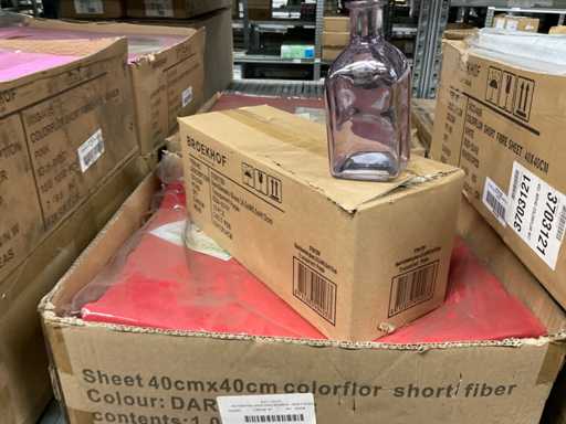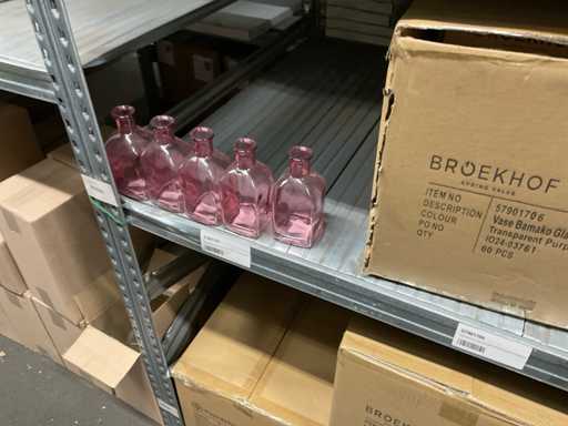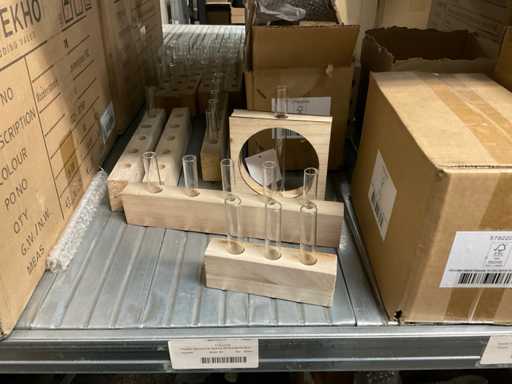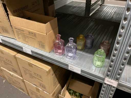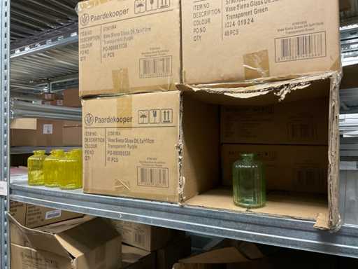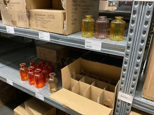 Inhoud van 1 zijde van stelling bestaande o.a. uit vaasjes in verschillende maten en kleuren, exclusief stelling