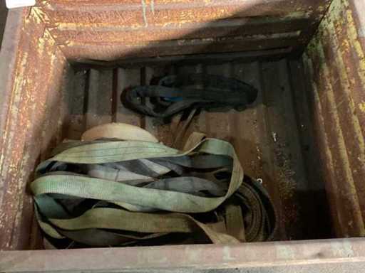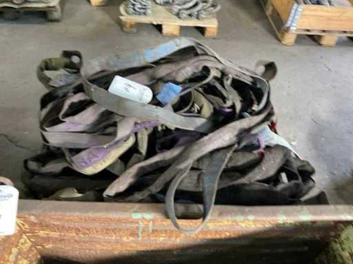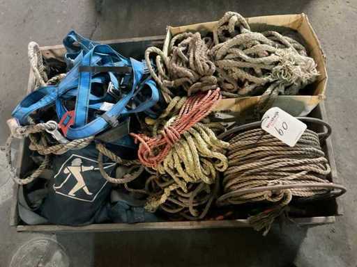 Waaronder harnassen, stuurtouwen. Inclusief partij hijsstroppen, 2x stapelbak en palletkrat
