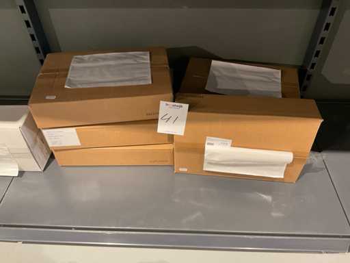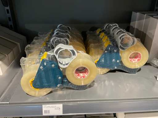 Bestaande o.a. uit afzetlint, verzendetiketten, tape, packinglist enveloppen, elastiekjes tape afroller, koord, kluwenhouder. Exclusief stelling.