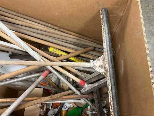 Waaronder bezemsteken, trekkers, hark in 1 palletdoos
