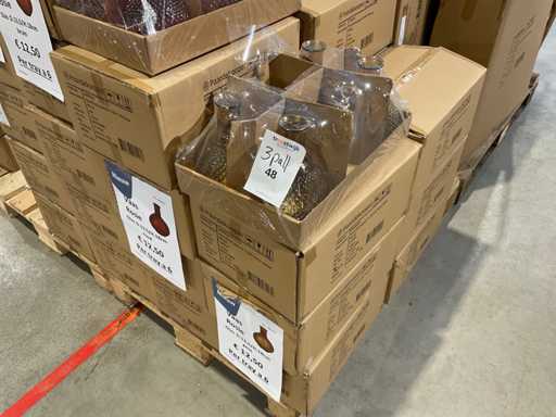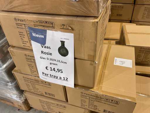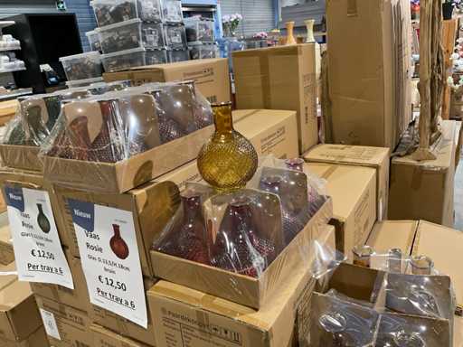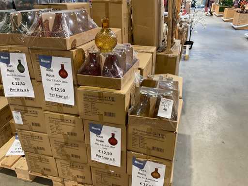 Inhoud op 3 pallets bestaande diverse kleuren vaasjes, inclusief pallet