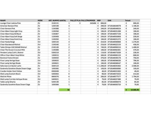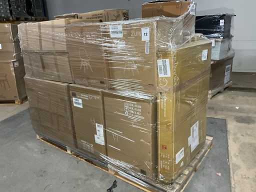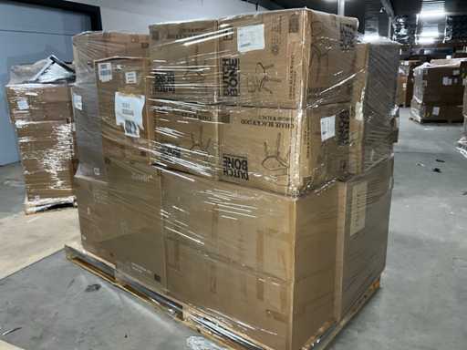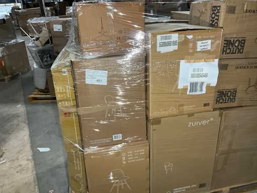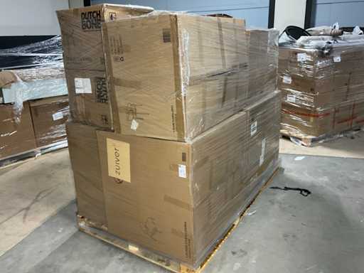 Bestaande uit merken: Zuiver, Dutchbone. Op 1x XL pallet, transport afmeting circa: 2300x1200x1900 mm, betreft A-grade retour producten.