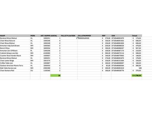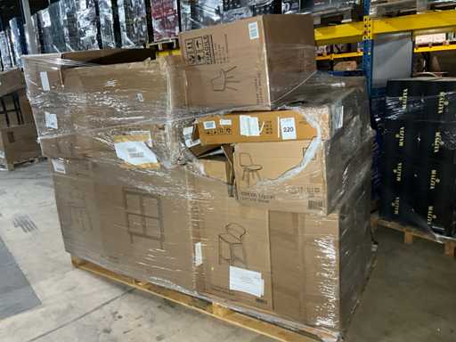 Bestaande uit merken: White label living, Dutchbone, Housecraft living. Op 1x XL pallet, transport afmeting circa: 2300x1200x1900 mm, betreft A-grade retour artikelen.