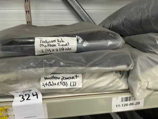 Bestaande uit onder andere 1x podiumrok zwart molton, molton/gordijn, totaal circa 17 stuks divers