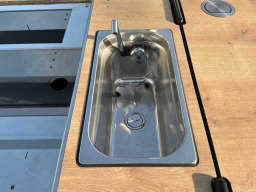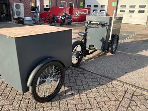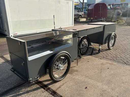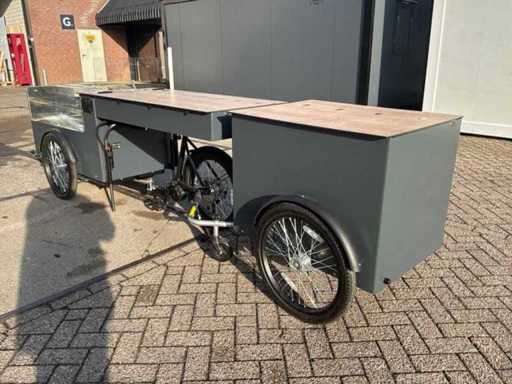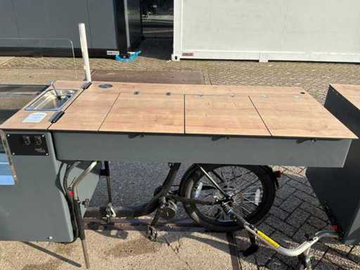 Ongebruikt. Voorzien van: koelkast, verlaagde werkbank, voorraadbakken, parasol.Werkt op gas en elektra. Fiets is voorzien van een Bafang middenmotor.