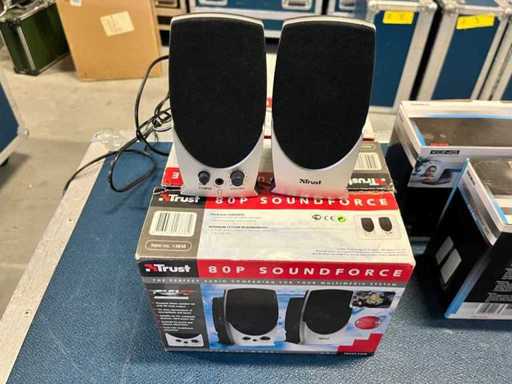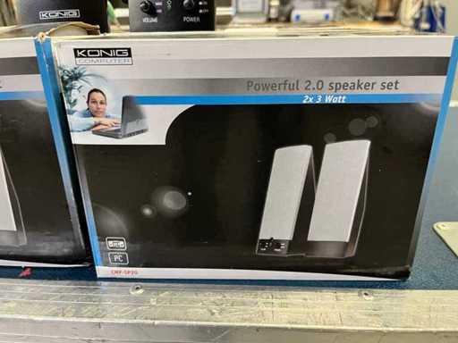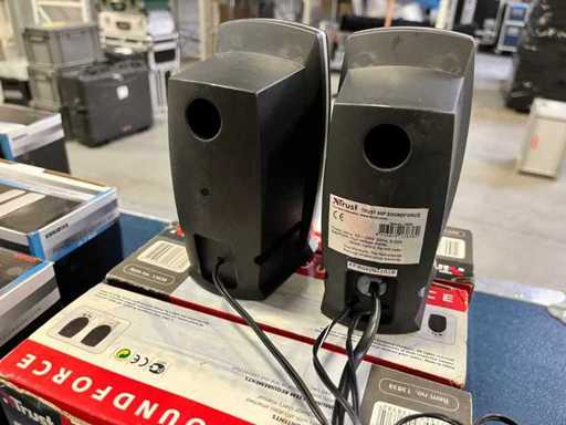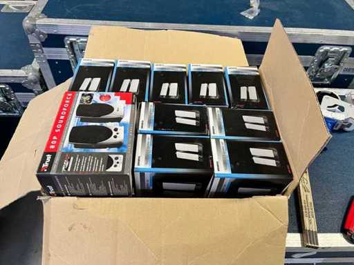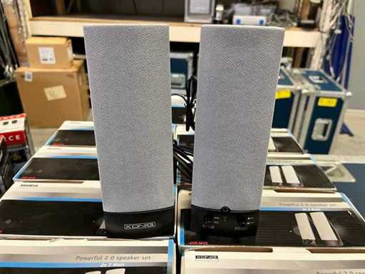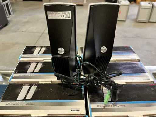12 paar pc-luidsprekers, allemaal in originele doos, 2 verschillende modellen (zie foto's) Kabel zoals getoond. Geleverd in één doos, ongeveer 50 x 40 x 25 cm