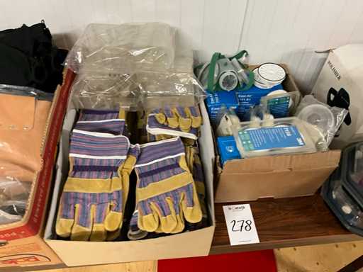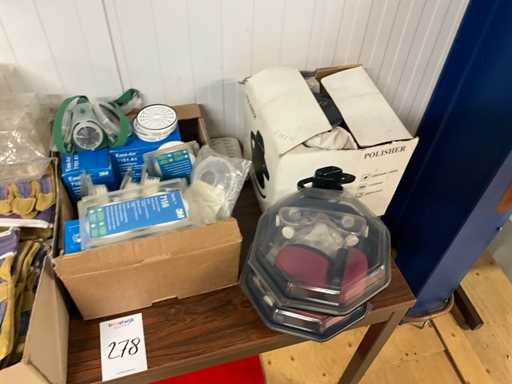 bestaande uit handschoenen, gehoorbescherming, gasfilters, boormachine houders