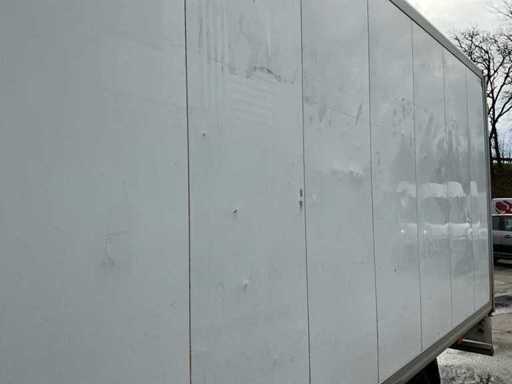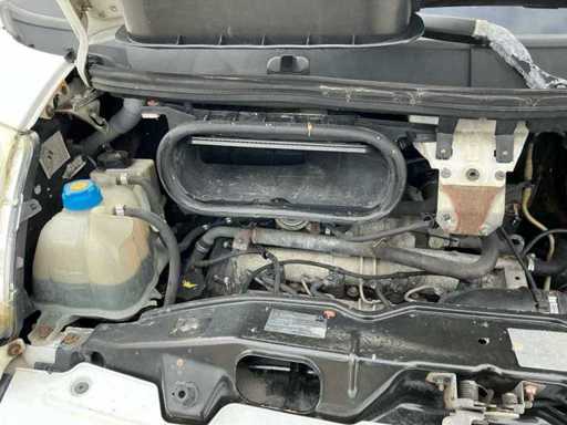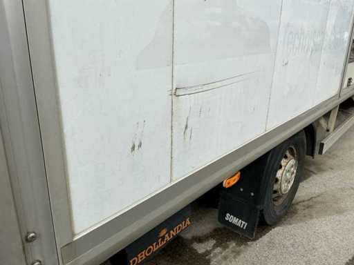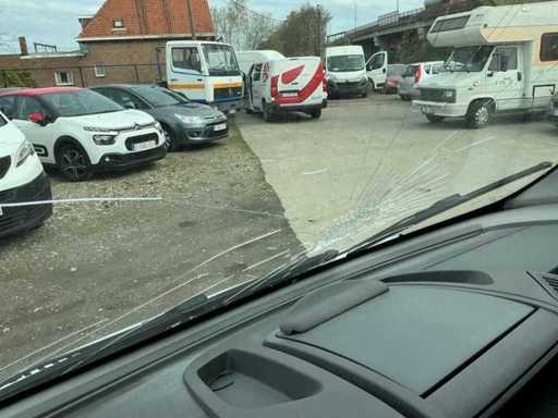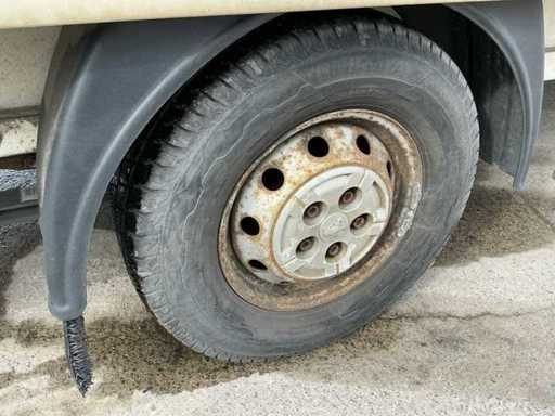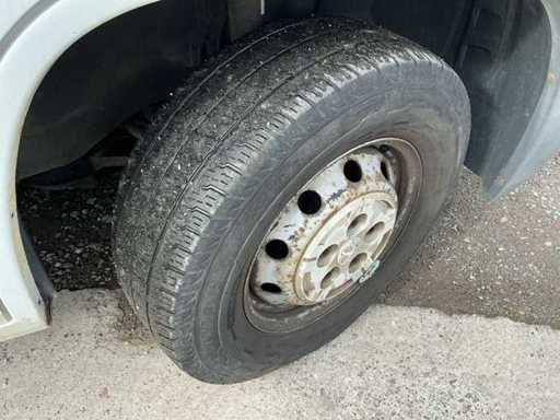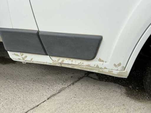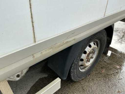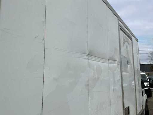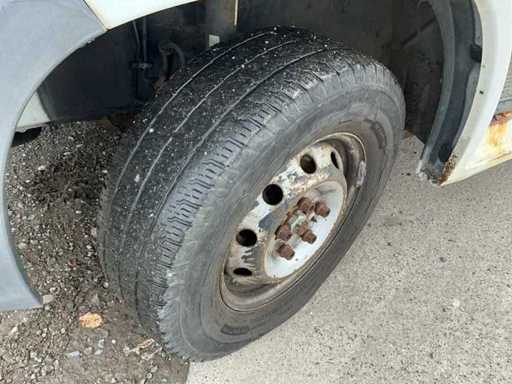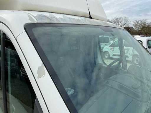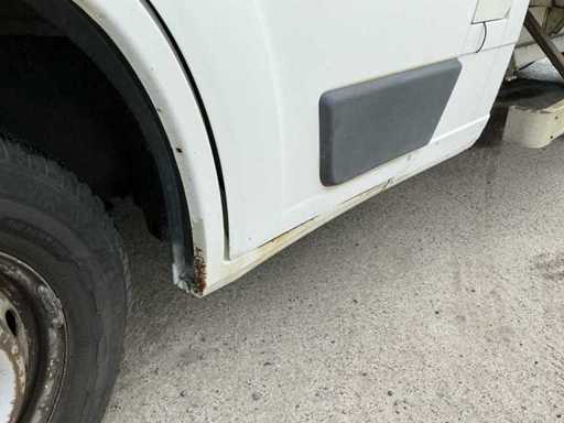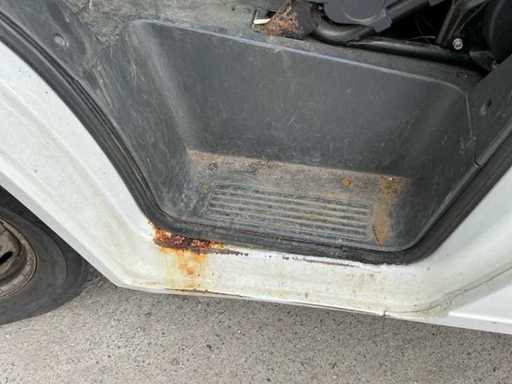 Het voertuig vertoont gebruikssporen rondom, waaronder krassen, deuken en beschadigingen aan de opbouw en bumpers. De voorruit is gebarsten en dient vervangen te worden. Technisch start en rijdt de wagen.