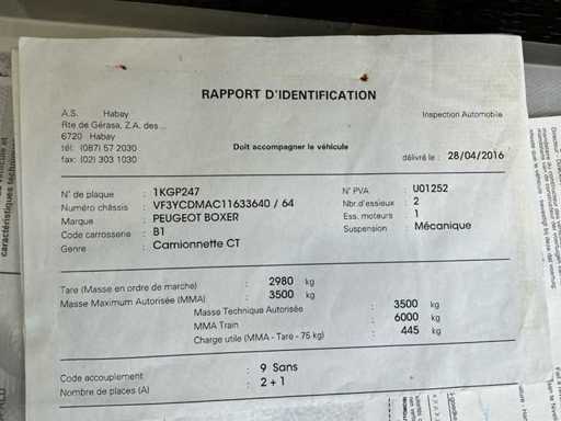 Deze Peugeot Boxer met gesloten laadopbouw is een praktische en ruime bedrijfswagen, ideaal voor transport en logistieke toepassingen. Het voertuig is uitgerust met een krachtige 3.0 dieselmotor (116 kW) en een manuele versnellingsbak, wat zorgt voor een degelijke rijervaring en voldoende trekkracht bij belading.