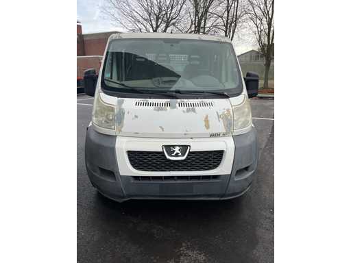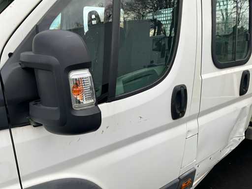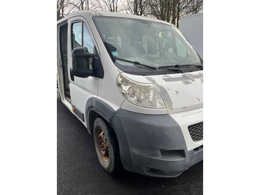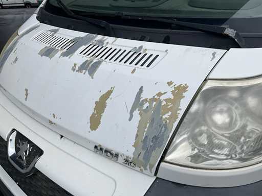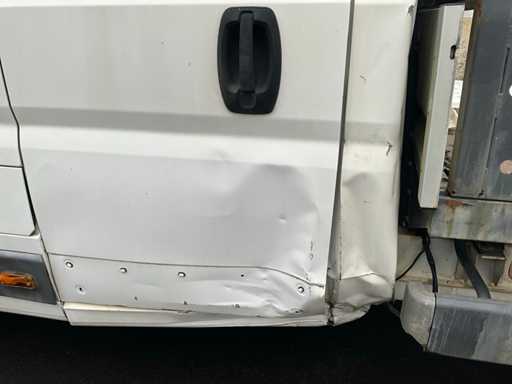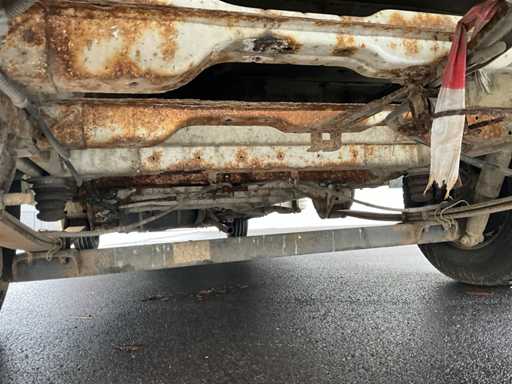 moet met booster gestart worden (batterij dient vervangen te worden; schade (carrosserie, mist een deur en zijpaneel laadbak) maar start, rijdt; chassis vertoont roestvorming - qua papieren enkel “bewijs van verlies” aanwezig