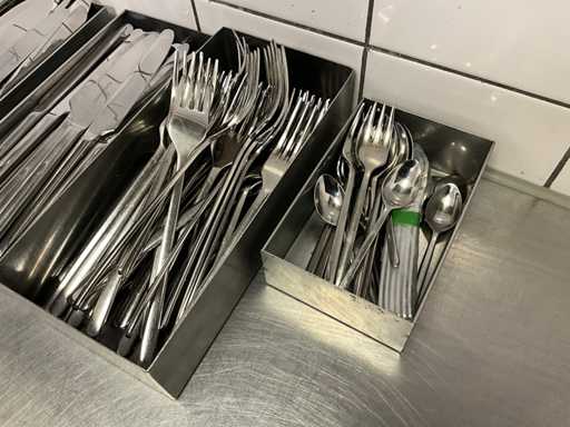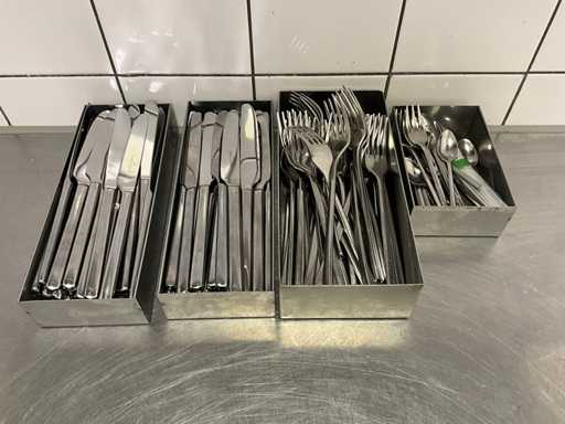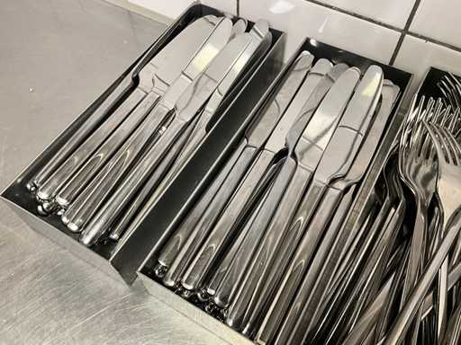 ca. 60 x mes, 40x vork en 24x klein bestek. Incl. bakken zoals op foto's.
