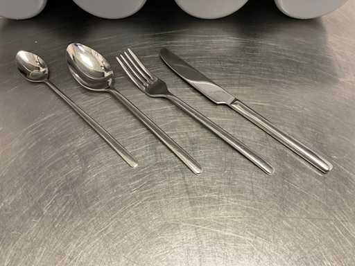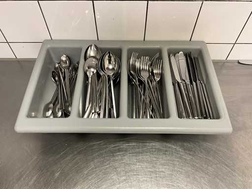 Set betreft 50x mes, 50x vork, 40x lepel en 20x sorbetlepel.