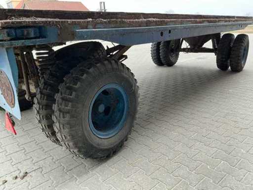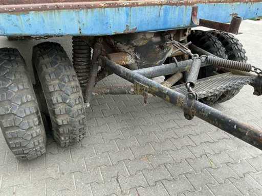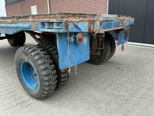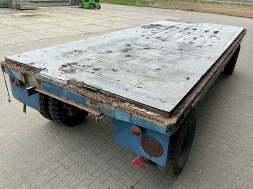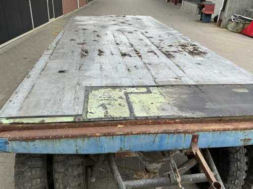 Totale lengte inclusief dissel: 790cm. Hoogte laadvloer: 130 cm. Afmeting Laadvloer 570 x 240 cm. Voorzien van: trekoog aansluiting, dubbellucht wielen rondom, veren en schokdempers.