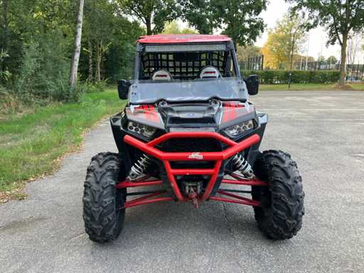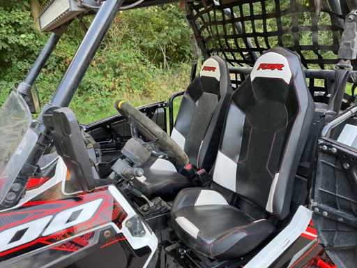 Voorzien van: Lier, rolkooi, goede offroad banden, Apk tot 27-03-2026, koppel: 97Nm, Polaris RZR XP 1000 EPS side-by-side met 999cc vloeistofgekoelde 2-cilinder EFI benzinemotor (±110 pk), automatische PVT-transmissie (H/L/R/P), inschakelbare 4x4-aandrijving met vergrendelbare vooras, elektronische stuurbekrachtiging (EPS), dubbele A-arm voorvering en trailing-arm achtervering met ca. 41 cm veerweg voor en 46 cm achter, hydraulische schijfremmen rondom, 36 cm bodemvrijheid, ca. 630 kg leeggewicht, 34 liter tank, ±680 kg trekvermogen, 2 zitplaatsen, rolkooi, sportstoelen met gordels en zware off-road banden.