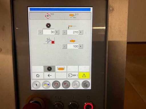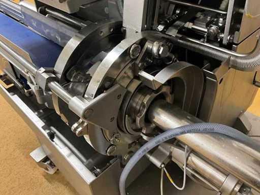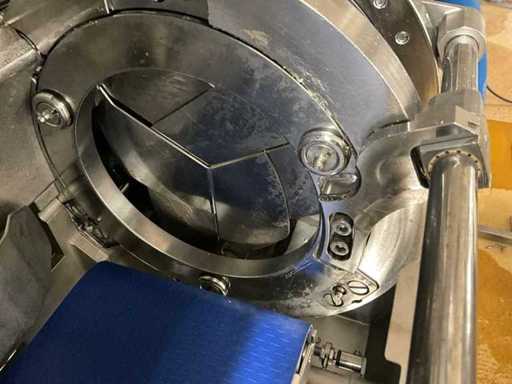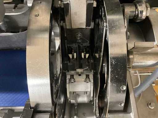 Automatische dubbele knipmachine voor grote dikten en gegoten producten, maximaal 200 mm diameter, tot 60 cycli per minuut.