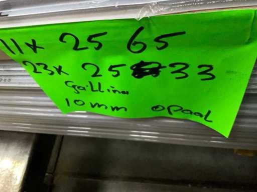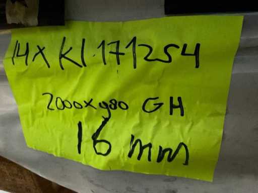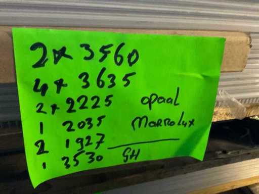 9x 1670x1050x8,5mm, 14x2000x980x16 mm, 11x2565x1050x8,5 mm, 23x2533x1050x8,5 mm, circa 40 stuks diverse lengte maten, zie foto
