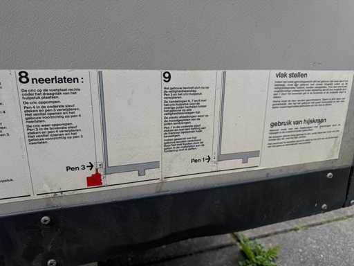 Maximale hoogte met stelpoten 2850mm; v.v. verdeelkast; ramen en deuren; metalen stelpoten; gebruikt;