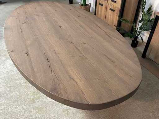 Eetkamertafelblad zit los van de poot. Exclusief bevestigingsmaterialen.