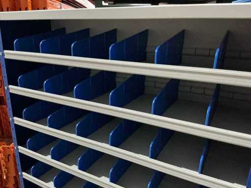 Voorzien van: nieuwe kast. 6 tussen tussen schotjes per lade 72 in totaal. Staal poedercoat.