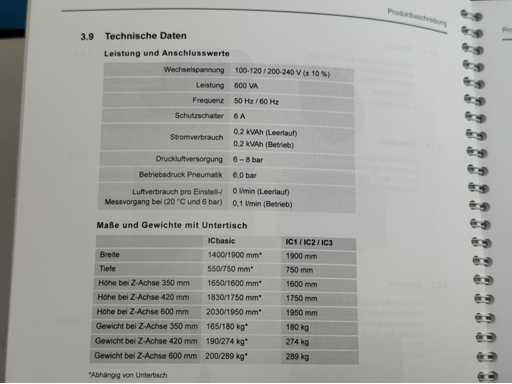 Meetbereik X: 420mm , Meetbereik Z: 420mm , Keelmeter: 100mm , Vermogen: 600VA , voor meer details zie foto van de handleiding