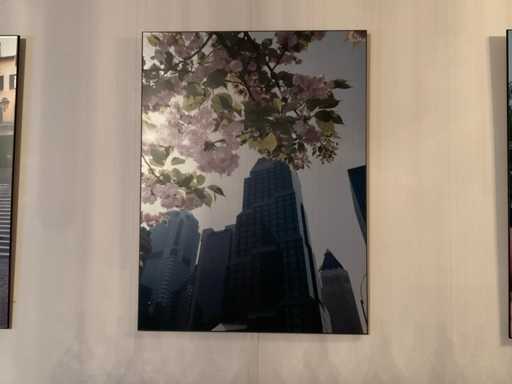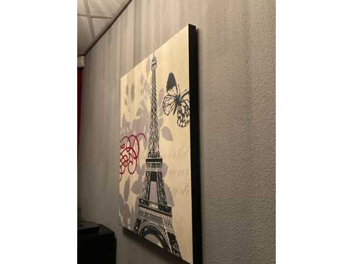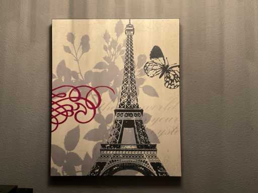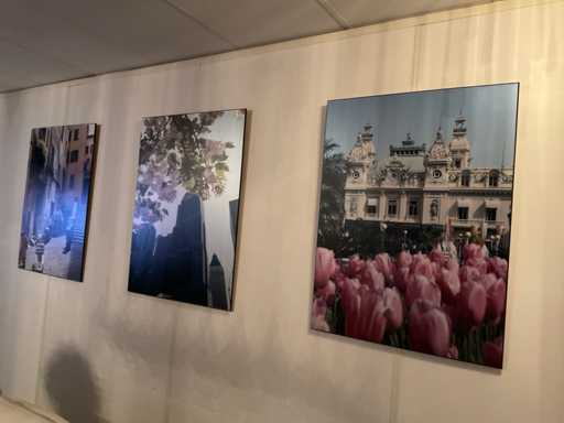 Bestaande uit 3 prenten op hout, 1 canvas afm ca. 69x84 cm en 1 prent in lijst afm ca. 65x95 cm