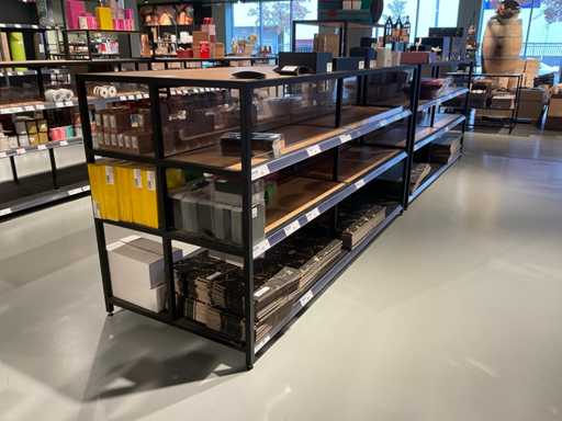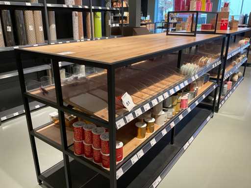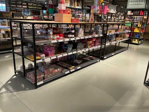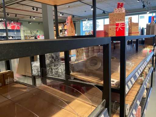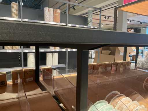 Inclusief verhogingen en 5 glazen vazen, stelling bestaat uit 1 deel en is niet demontabel, leggers kunnen wel gedemonteerd worden.