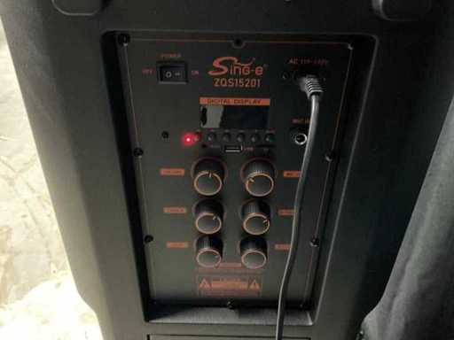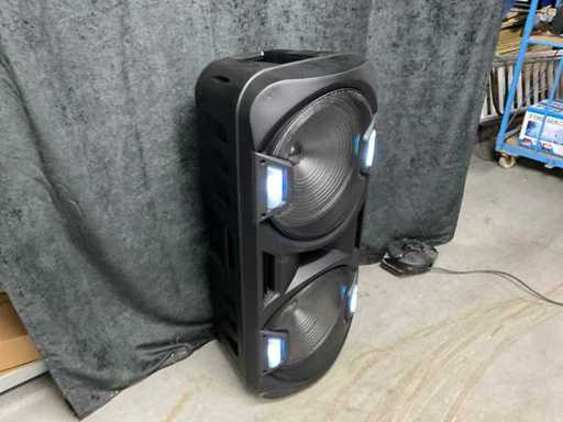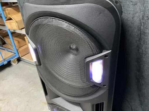 LED verlichting, Bluetooth, USB, laadkabel, 1x Microphone, 2x 15 inch woofer, 800 Watt.