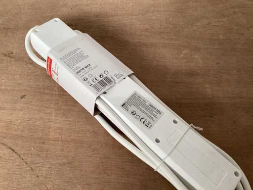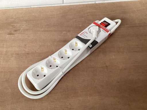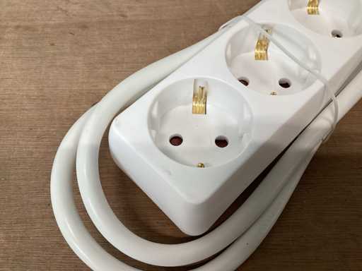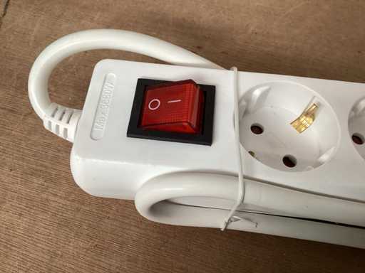 5 voudige stekkerdoos 16A met verlichte schakelaar, randaarde , wit, kabel 1,50 meter