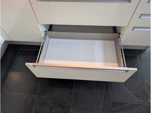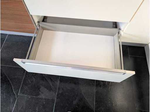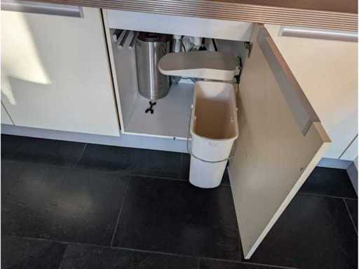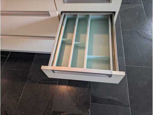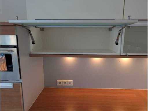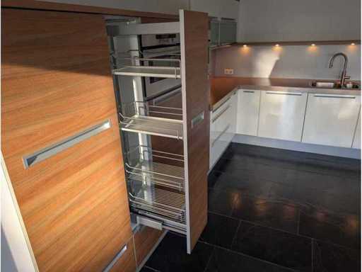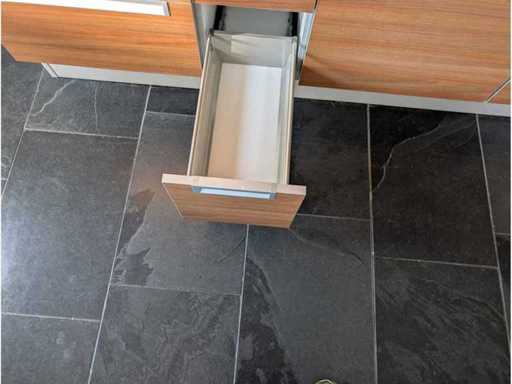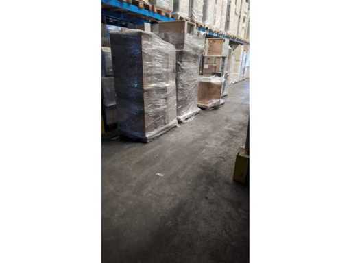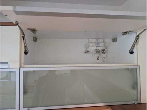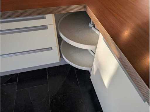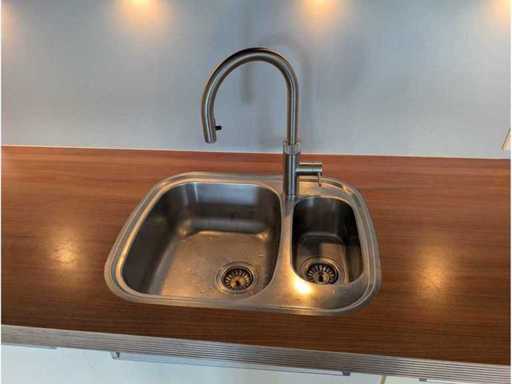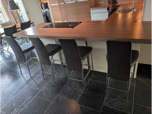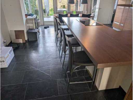 Conditie: gebruikt; afmetingen linkerdeel circa 400x60x178 cm; afmetingen middelste deel circa 375x70x90 cm; afmetingen rechterdeel circa 300x100x90 cm; reeds gedemonteerd en ingepakt op pallets. (afstapelen, omruilen of statiegeld per pallet); pallets zijn niet inbegrepen; statiegeld betalen bij afhalen, of pallets afstapelen; werkblad niet ingepakt op pallets (26-2DE-03417); zonder kraan en barkrukken