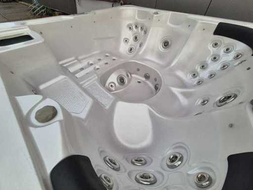 Voorzien van 4 zitplaatsen; 1 ligplaats; automatisch filtersysteem; 2 hoofdkussens; speakers; kunststof omkasting; inclusief cover; Niet getest op functioneren (Marge, geen BTW)