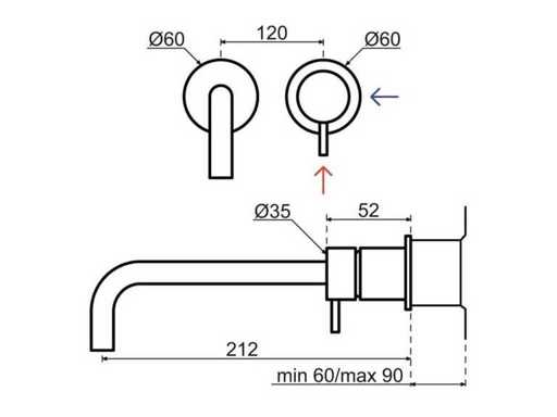 Ongebruikt in doos; zonder inbouwbox; Montage Wand; Dit kavel vormt samen met het kavel ‘Qisani - Flow - Inbouwbox universeel voor wastafelkraan’ één complete set.