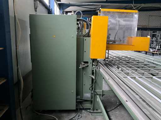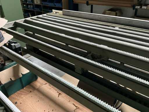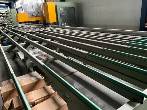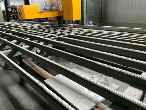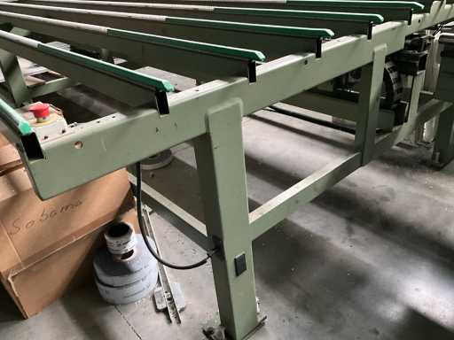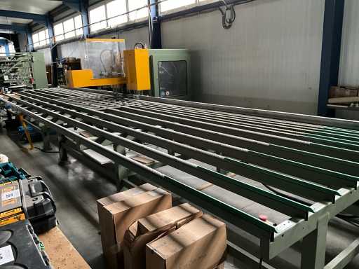 Vv automatische aanvoerstraat en 5 koppige centerfrees, dient te worden losgekoppeld van lasmachine