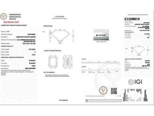 radiant diamant - 1.03 ct - E/VVS2 (IGI gecertificeerd)