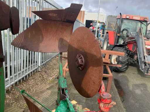 Voorzien van steunpoot, voorscharen, en schijven op laatste element, kantschijf.