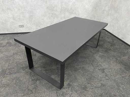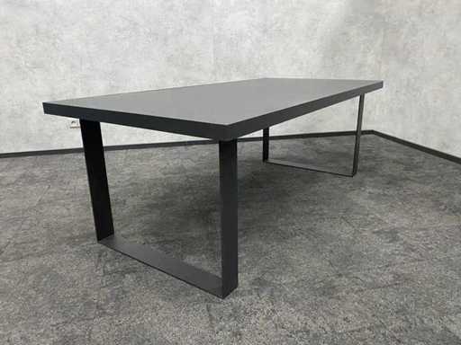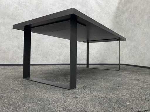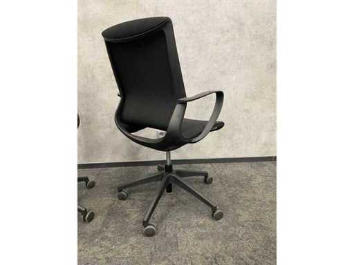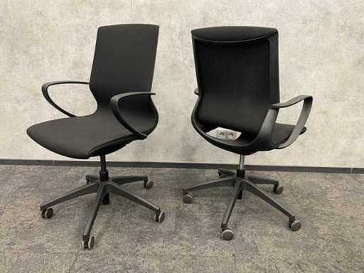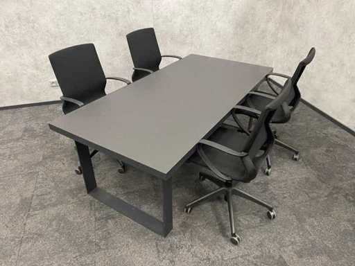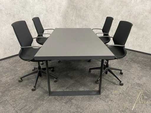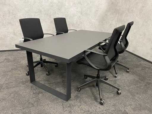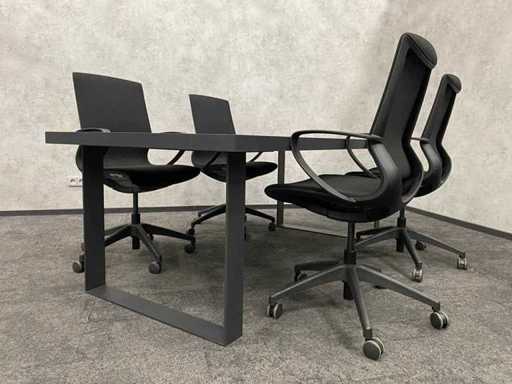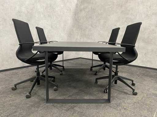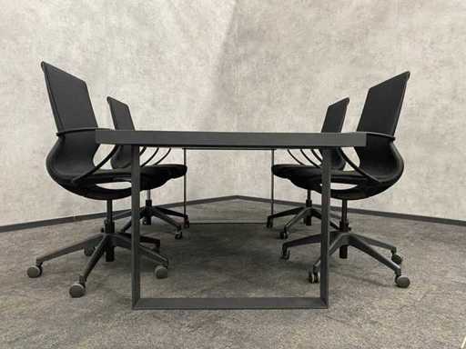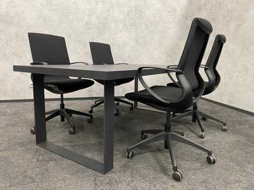 4x Relativ verrijdbare, in hoogte instelbare conferentiestoelen -- 1x mat zwarte tafel