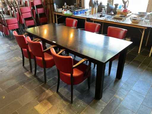 inclusief 6 kunstlederen stoelen; zithoogte 50 cm.