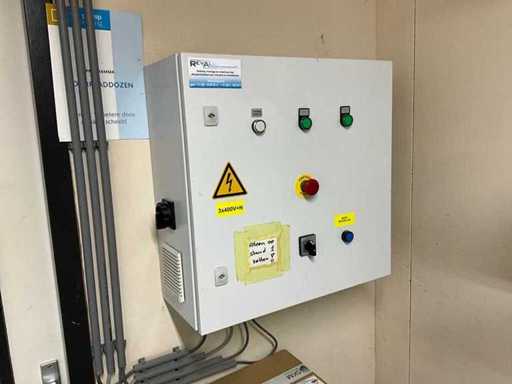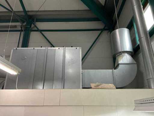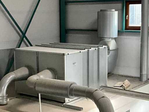 2x aanzuigbuis (waarvan 1 met elektrische klep), uitblaasbuis in ruimte, bedienings kast