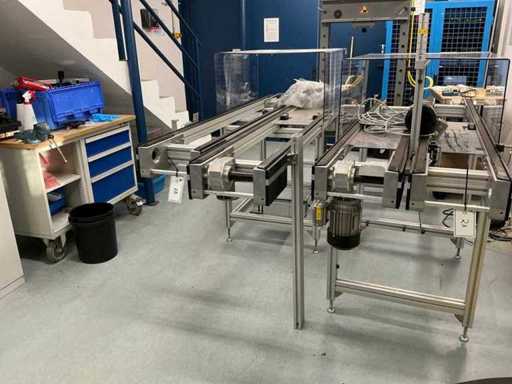 Strookbreedte 320 mm, bestaande uit 2 modules met lengte 2200/2400 mm, bandhoogte 970 mm, op ITEM-substructuur