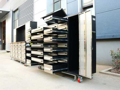 Voorzien van Gepoedercoat staal; 35 lades; 1 Deur; 1 bovenkast; Ongebruikt (Transport afmetingen 2875x725x1140mm)