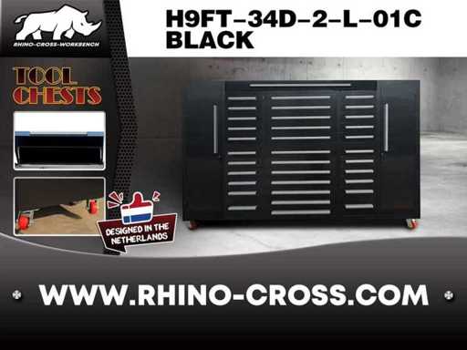 Rhino-Cross-Workbench H9ft-34D-2-L-01C Zwart Werkbank 34 lades 2 deuren