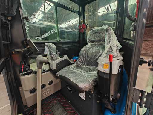 Rippa R22 PRO mini-graafmachine – ongebruikt – ca. 2265 kg – Kubota D1105 dieselmotor, vermogen 18,2 kW (~24,7 pk) – brandstofverbruik laag, stil en zuinig – load-sensing hydraulisch systeem met 9-weg ventielen doorgetrokken tot einde arm – hydraulisch snelwisselsysteem aanwezig – hydraulische klem (thumb) aanwezig – hydraulisch duwblad aanwezig – uitschuifbare onderwagen van 1300 tot 1500 mm – zero tail swing + zwenkbare giek (swing boom) – maximale graafdiepte ca. 2293 mm – graafhoogte ca. 3761 mm – graafradius ca. 4143 mm – uitworphoogte ca. 2496 mm – rijsnelheid 2,1 / 4,0 km/u – volledig gesloten cabine met veiligheidsglas – goede zichtbaarheid, comfortabel en ruim – bedieningshendels ergonomisch geplaatst – grote inspectieluiken voor eenvoudig onderhoud – CE/EPA/Euro5-gecertificeerd – geschikt voor tuin- en landschapswerk, nutsvoorzieningen, bouw en lichte sloop – compact, krachtig en veelzijdig inzetbaar.