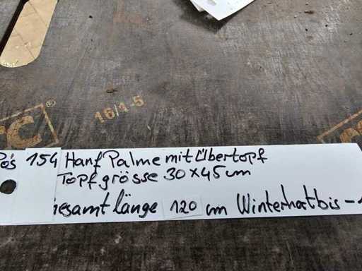 Deze prachtige henneppalm (Trachycarpus fortunei) brengt direct een mediterrane flair in je buitenruimte. Met een indrukwekkende totale hoogte van ongeveer 120 cm en zijn karakteristieke, waaiervormige bladeren is het een echte blikvanger voor het terras of de tuin. De robuustheid is bijzonder opmerkelijk: als winterharde palm trotseert hij koudere temperaturen en blijft het hele jaar door groen. Dit exemplaar wordt geleverd in een hoogwaardige, grijze plantenbak in steen, die het geheel perfect afrondt en directe gebruiksklaar garandeert.