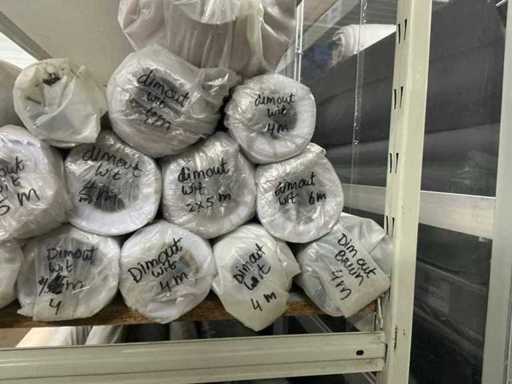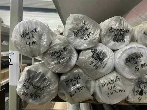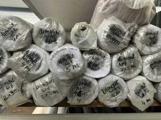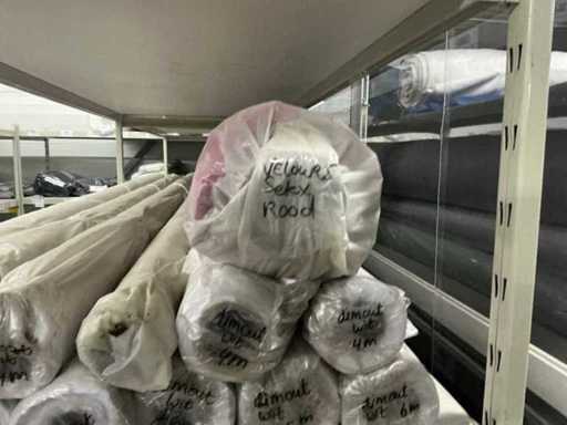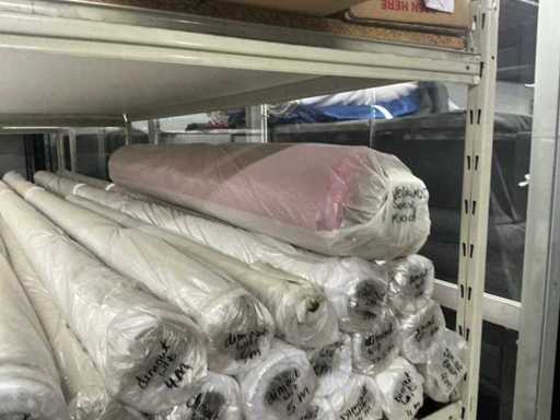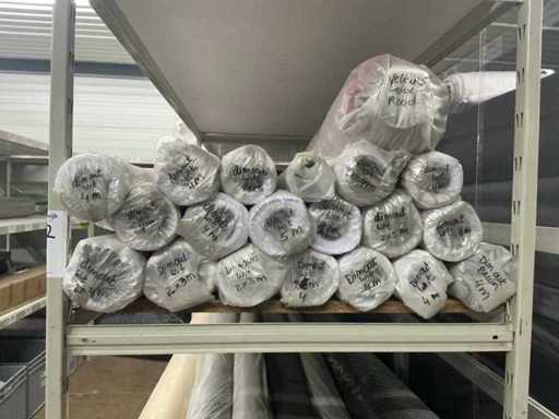 Rolbreedte circa 3 meter, diverse lengtes, deels aangebroken rollen, inclusief 1x Setex velour rood(rolbreedte 1,5 meter.)