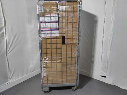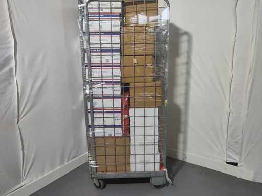 Volle rolcontainer met voornamelijk overstock, overbevindingen, retouren. Rolcontainer niet inbegrepen.